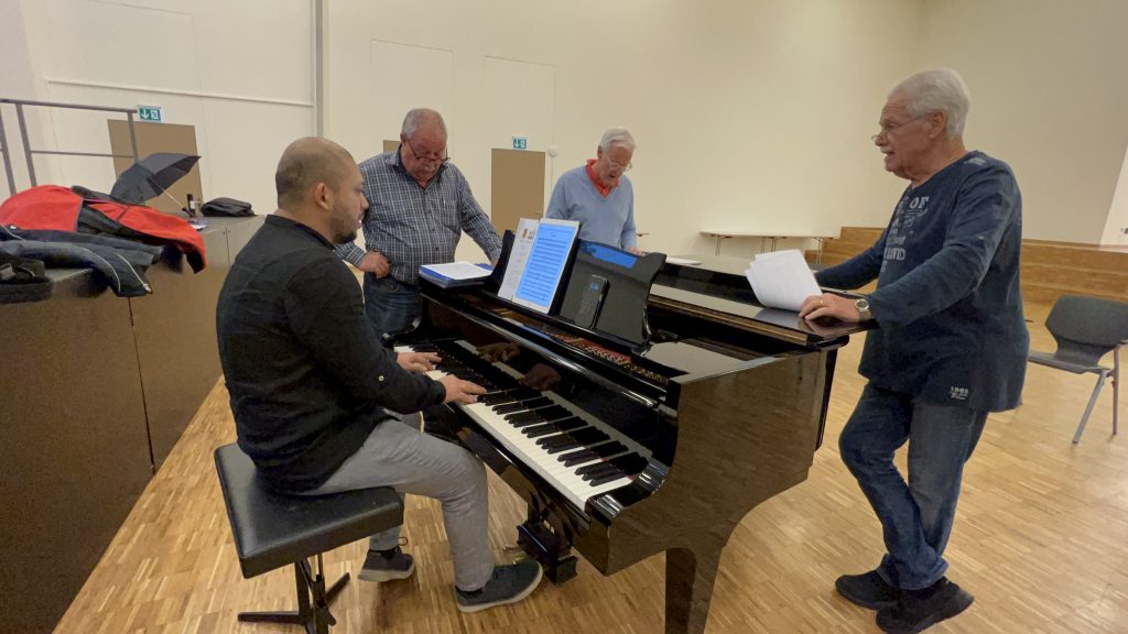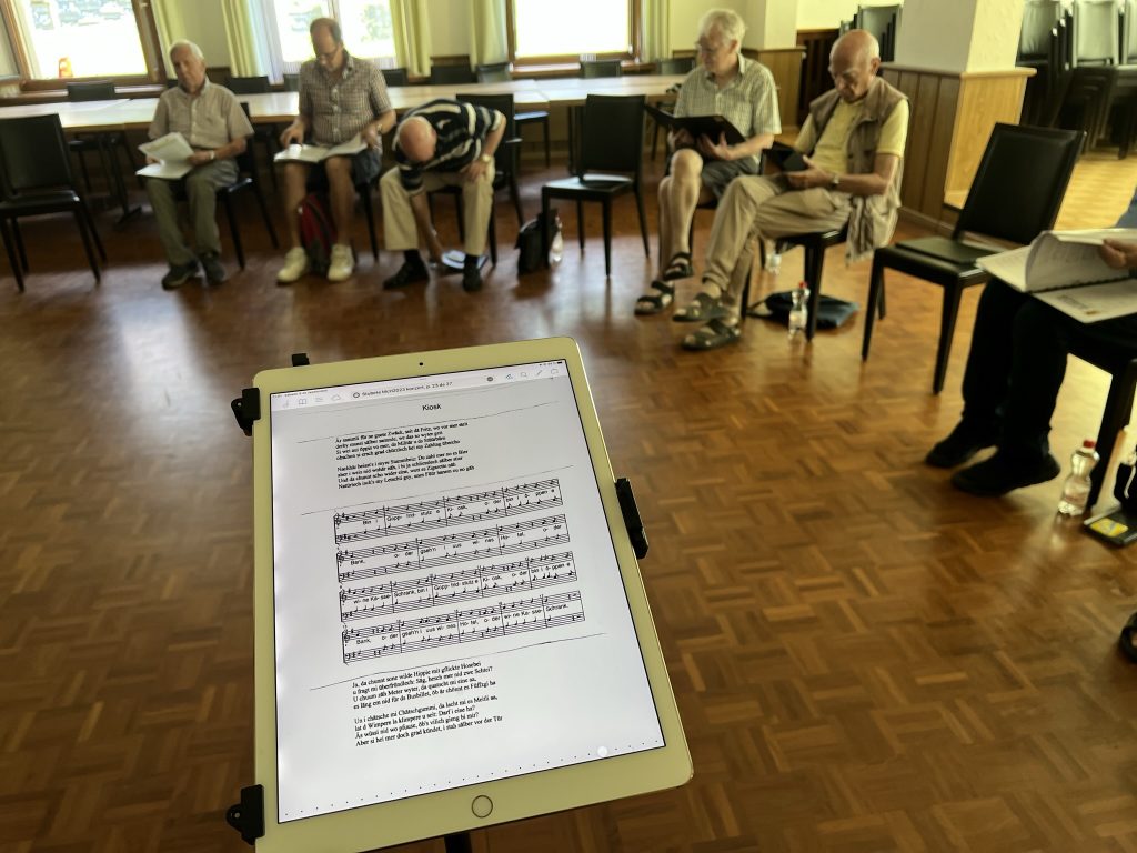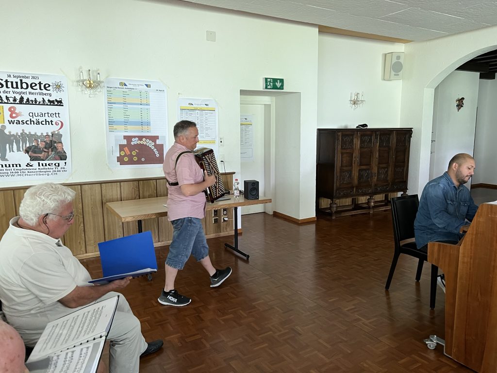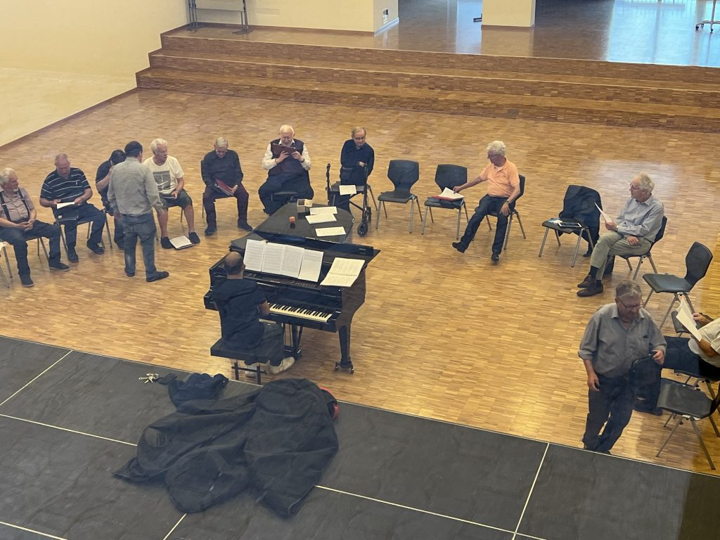 Jeden Mittwochabend finden in der Aula des Sekundarschulhauses Proben unter der Leitung der Dirigentin Andrés Heredia Alonso statt. Danach trifft man sich zu einem gemütlichen Hock in der Breiti.